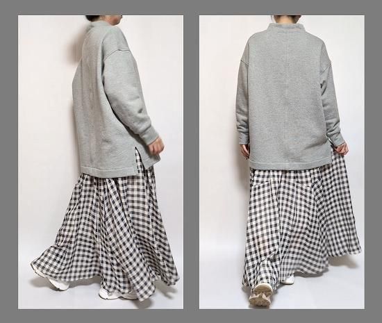 ■Sample details■ 杢グレー:裏毛(生地厚:厚 / テンション:やや低) / マキシマムフレアーSK / トラックニットPT